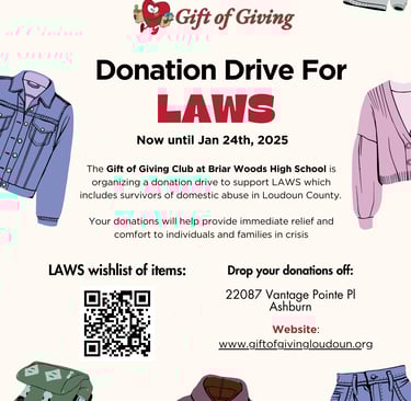 The Gift of Giving organization proudly supports LAWS through dedicated donation drives. These efforts focus on providing essential items to individuals and families impacted by domestic violence, sexual assault, and abuse.